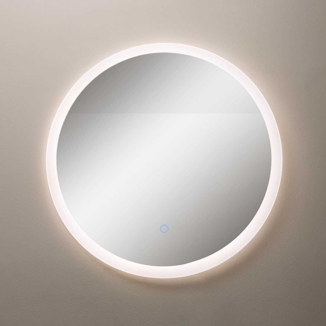 Schöner runder Spiegel wahlweise in 60 und 80 cm Durchmesser mit Beleuchtung.
